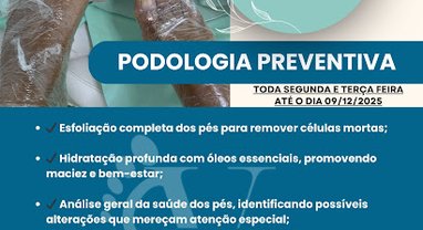Olá! O tratamento podológico regular é essencial para manter a saúde dos seus pés. Nossos serviços profissionais de podologia não apenas proporcionam alívio imediato para desconfortos como calosidades e unhas encravadas, mas também previnem problemas mais sérios a longo prazo. A podologia contribui para a prevenção de condições como fungos, calos, e ajuda no alinhamento correto dos pés, promovendo uma postura saudável. Agende sua consulta para garantir pés felizes e saudáveis!