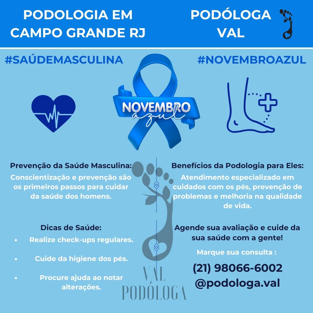 Podologia em Campo Grande, RJ - Conforto e Bem-estar em Primeiro Lugar! Nossas instalações modernas e acolhedoras são projetadas para proporcionar os melhores tratamentos podológicos, incluindo: -Tratamento de micose -Unhas infeccionadas -Unhas encravadas -Frieiras -Hidratação profunda dos pés -Reflexologia -Argiloterapia -Rachadura nos pés -Calos e Calosidades E muito mais. Avaliação Online GRATUITA! Desfrute de serviços de qualidade da podóloga Val. Agende sua consulta agora e cuide da saúde dos seus pés! Visite-nos: Endereço: Rua Augusto de Vasconcelos, 914 - 3° Andar - Sala 303 Facilidades: Elevador disponível, estacionamento ao lado Localização: Ao lado do Rocha Faria Agende Agora!